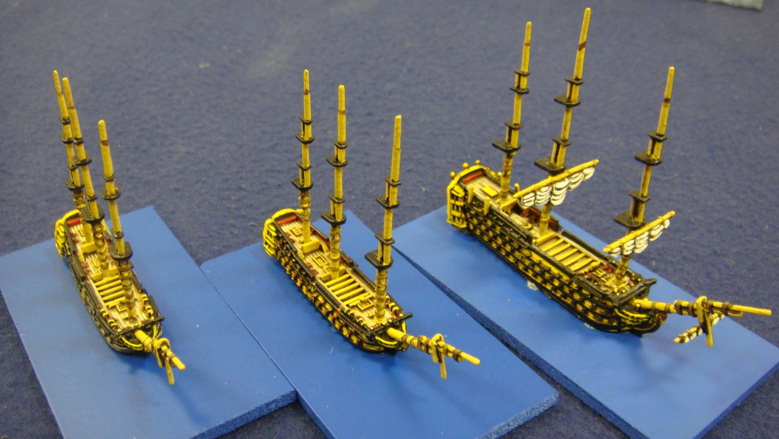 Потратил 5 часов времени, за это времяч успел докрасить два 64-пушечника, подготовить к покраске 80 и 74-пушечники, а также забазировать береговые укрепления (а заодно пересмотреть на заднем фоне "Квант Милосердия", "Последний из Могикан" и частично "Трансформеры 2".