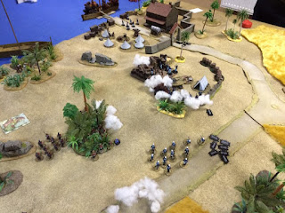 Сценарий - полнейшее безумие. Нужно было "ввести" в игру двух игроков - оба новички в системах от TFL, но не новички в варгейме, посему сценарий - "Царь горы", а именно: есть фактория американцев (дело происходит в Либерии), есть повозка со свеже "нарубленными" алмазами из либерийских копий. Есть жадные французы на будь он не ладен "Ашероне", не менее жадные британцы (официальная версия - переброска колонны войск игнорируя границы Либерии), а также фанатичные местные арабы - бейджа (им, в принципе пофиг - они пришли убивать белых колонизаторов и безбожников).