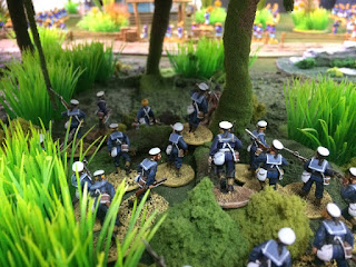 Как только наши люди оказались на границе джунглей - раздался первый выстрел этого боя - выстрелило 9-фунтовое орудие повстанцев, впрочем это было запланировано, орудие убило одного солдата из 36-го полка и ранило еще парочку. Примерно в 15600 наше орудие тоже открывает огонь нанося ранения засевшему за баррикадами противнику.